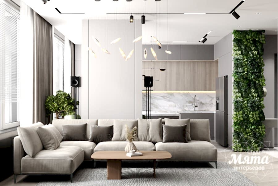 В современном стиле оформление должно быть однородным, чтобы на нем выгодно смотрелась мебель, предметы декора, аксессуары. Модное веяние - обои под покраску. Pin-Up внимание в дизайне квартиры в современном стиле можно на ярких обоях с геометрическим принтом. Одну стену можно выделить большой 3D-картиной или барельефом из гипса. Тогда интерьер не будет выглядеть слишком однообразно и скучно.