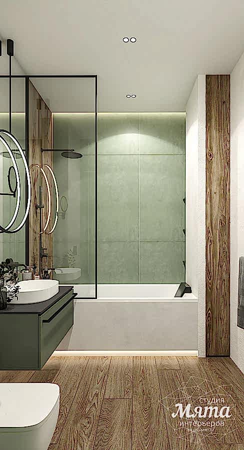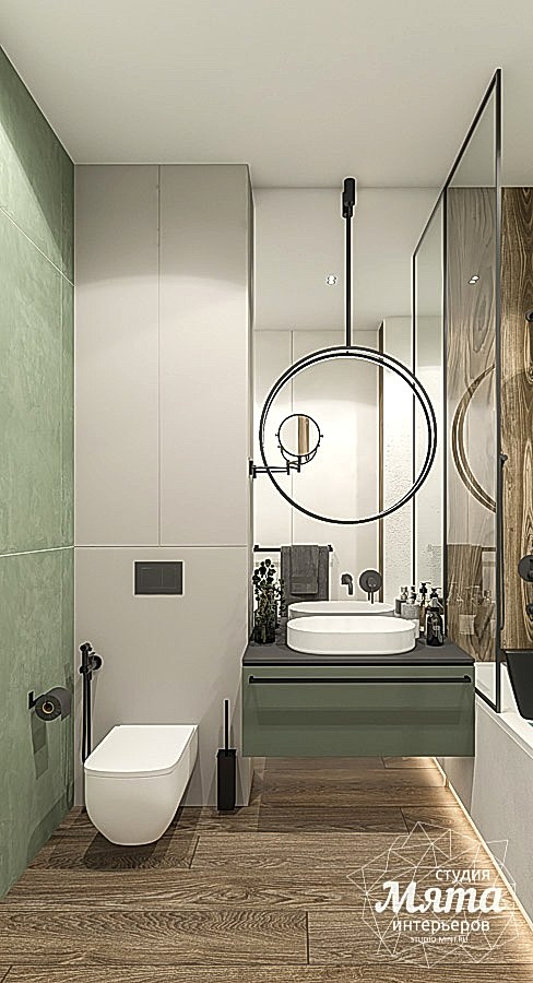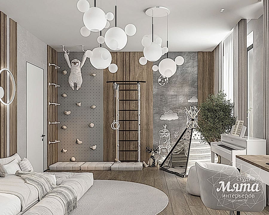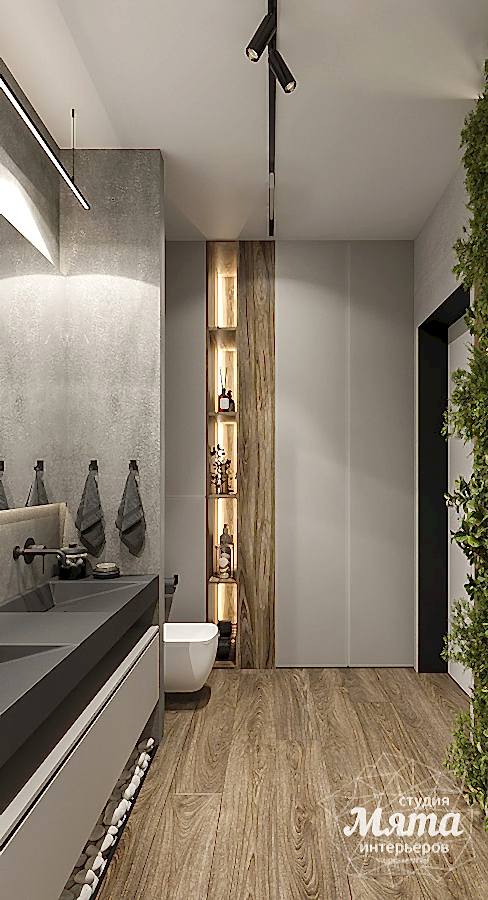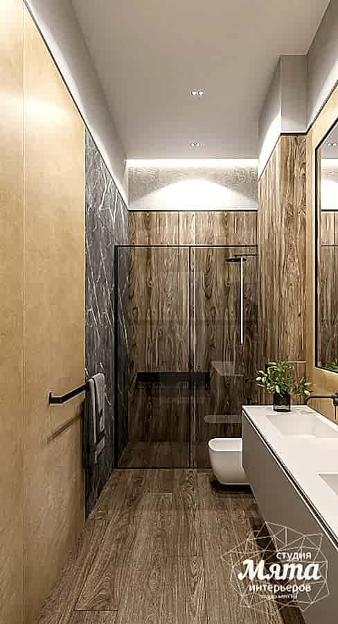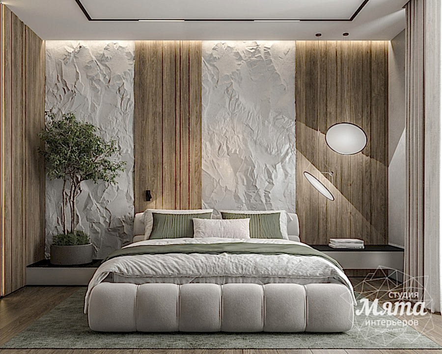 В отделке мы применили качественные, экологически чистые отделочные материалы с износостойкими свойствами. Для напольного покрытия выбрали водостойкий, высокопрочный ламинат в жилых комнатах и керамогранит с имитацией дерева в санузлах и бытовых помещениях. Для отделки стен использовали декоративную штукатурку с ненавязчивой фактурой, а в Pin-Up декоративных элементов выбрали гипсовые рельефные панели, МДФ-панели под дерево и декоративное озеленение, что внесло в интерьер индивидуальность, изюминку и особый уют. Крупноформатный керамогранит с природными оттенками и текстурами идеально вписался в оформление санузлов.