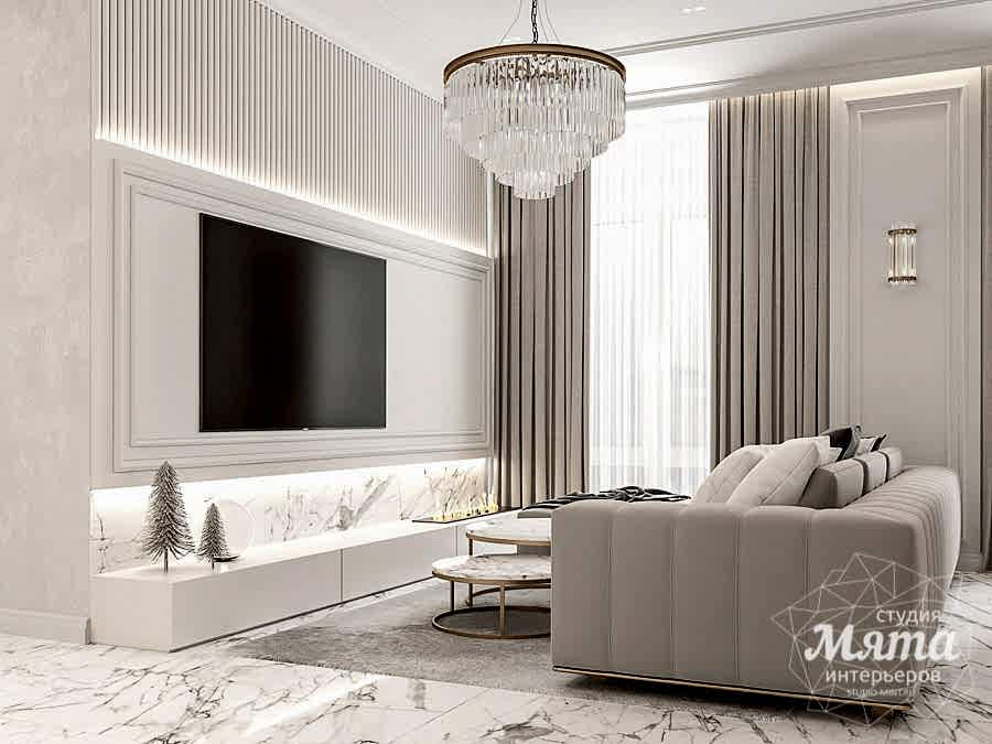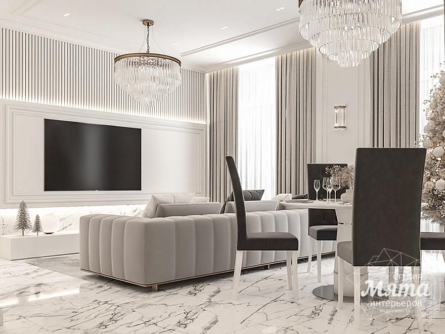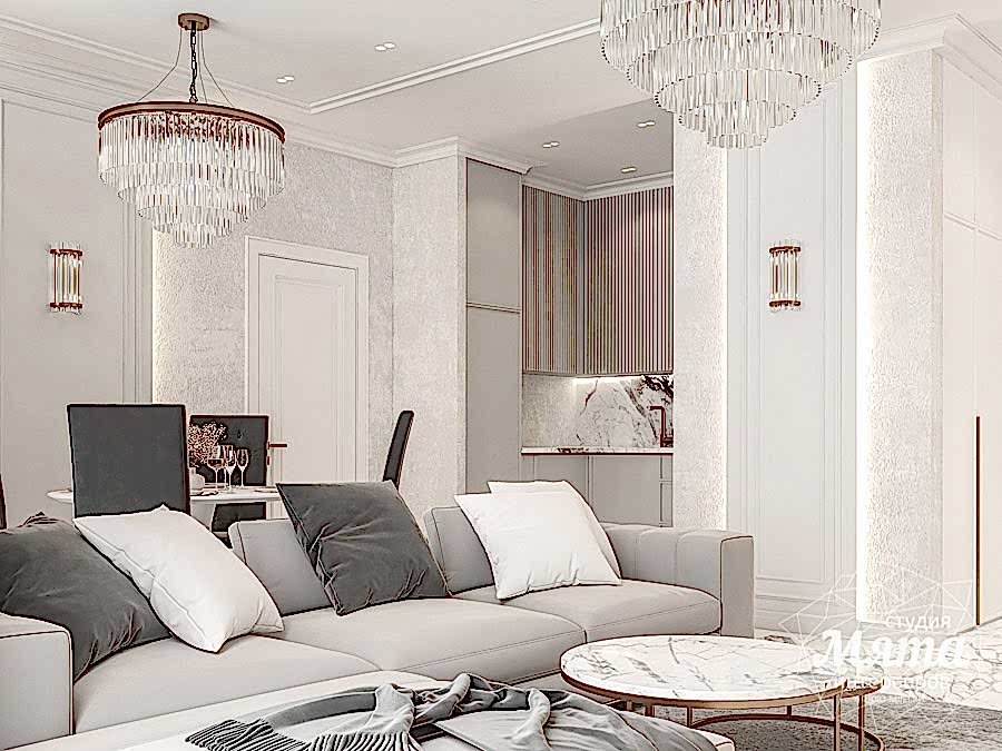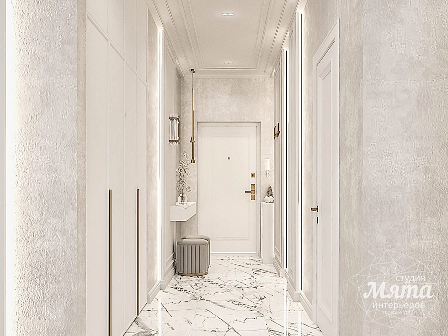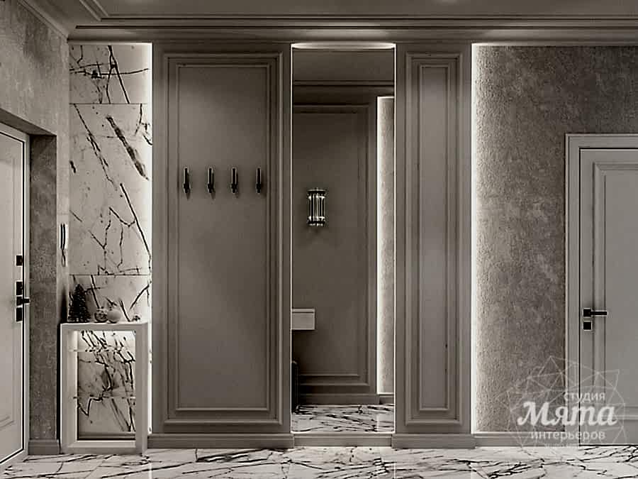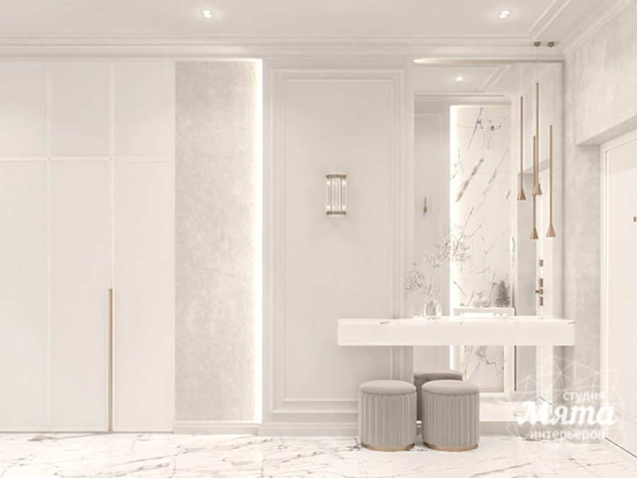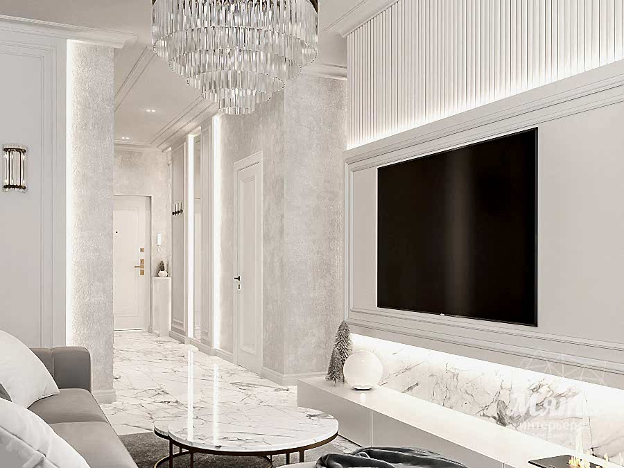 Все разрабатываемые нами помещения выполнены в едином стиле и цветовой гамме. В качестве Pin-Up отделочных материалов преобладает керамогранит под мрамор, который очень импонировал нашей Заказчице, декоративная штукатурка в серо-бежевых оттенках с мягкой матовой текстурой, светлые окрашенные поверхности, а в качестве декора - элементы минималистичной лепнины и декоративные гипсовые панели. Стиль и цветовая гамма мебели соответствует и поддерживает общую концепцию отделки помещений. Многообразие системы искусственного освещения явилось важной частью проекта. Заказчикам были нужны различные сценарии освещения: основной функциональный свет, декоративные подсветки, местное освещение отдельных зон и вечерний мягкий, уютный свет.