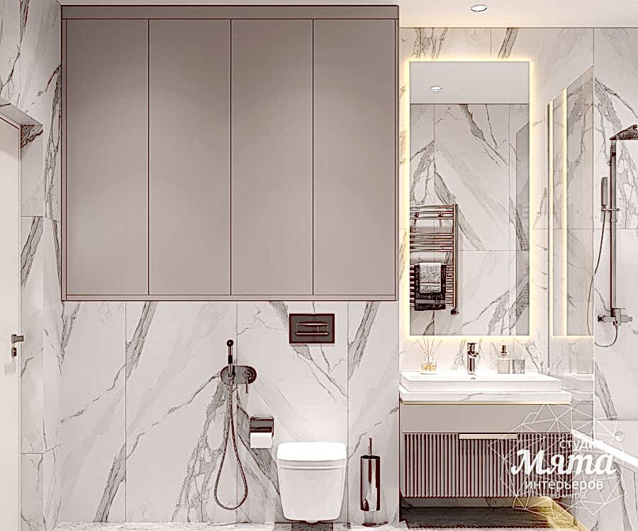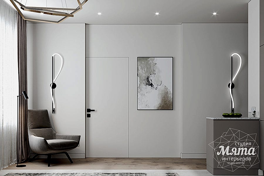 В результате интерьеры всех помещений четырехкомнтаной квартиры в Астане получились современными, легкими, Pin-Up воздушными.