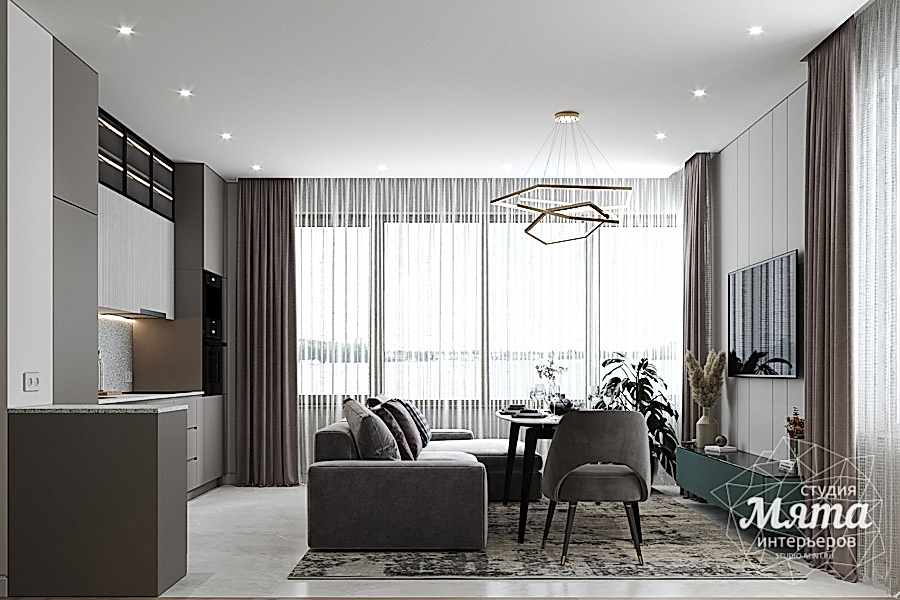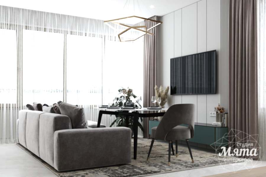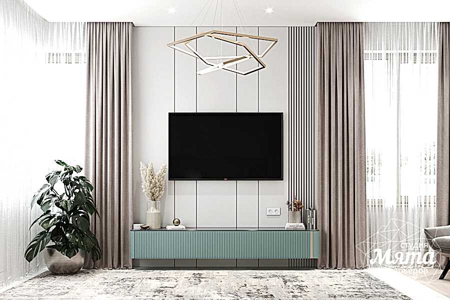 Совместно с Заказчиками мы выбрали современный стиль в спокойных Pin-Up и приглушенных цветах.