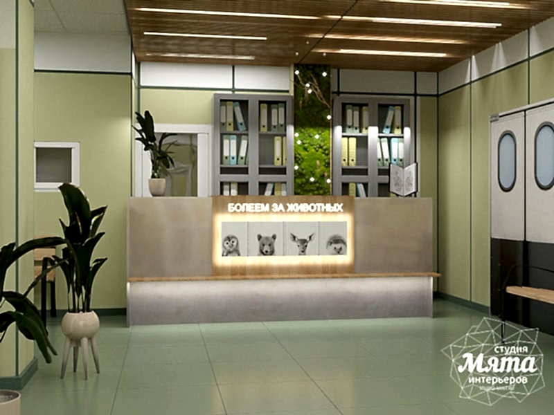 Дизайн интерьера ветеринарной клиники 100 м² [custom:v-gorode]: гигиеничность, Pin-Up уютная атмосфера ✔ Натуральные материалы ✔ Легкая санитарная обработка ✔ Максимум естественного света ✔ Фото ✔ 3D-визуализация ✔ Гарантия качества