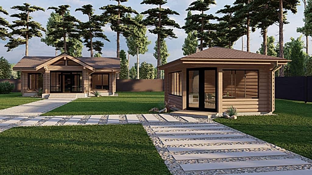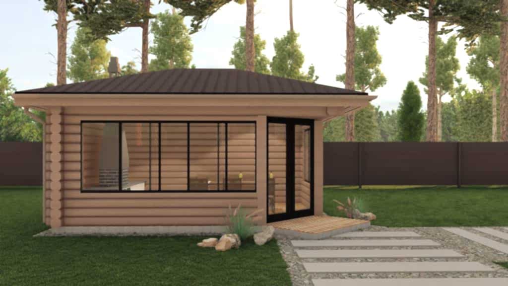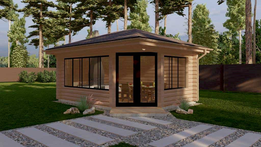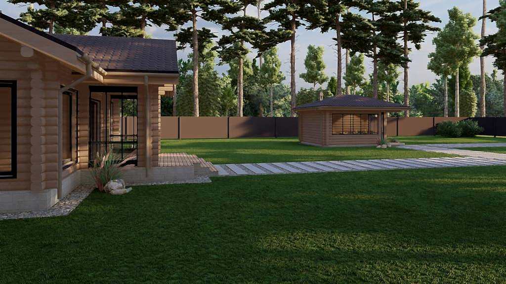 ★ Дизайн фасада одноэтажного дома и беседки из бруса [custom:v-gorode] ✔ Pin-Up проектов ✔ Ремонт под ключ с гарантией 3 года ✔ Закупим все материалы ✔ Проекты высочайшего уровня